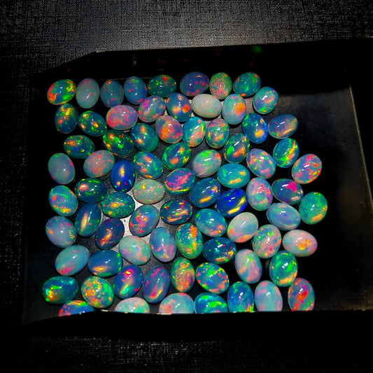 AAA + Quality Ethiopian Opal 5x7 mm Oval Cabochon, Rainbow Fire Opal Cabs, Ethiopian Wholesale Opal (Natural)