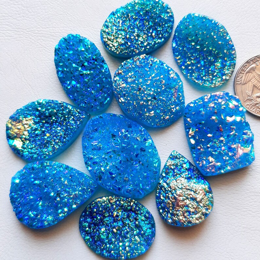 Paraiba Color Titanium Coated Druzy Stone Cabochon Wholesale Lot Gemstone By Pieces With Different Shapes And Sizes Used For Jewelry Making (Natural-Coated)