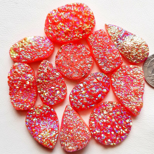Orange Color Titanium Coated Druzy Stone Cabochon Wholesale Lot Gemstone By Pieces With Different Shapes And Sizes Used For Jewelry Making (Natural-Coated)