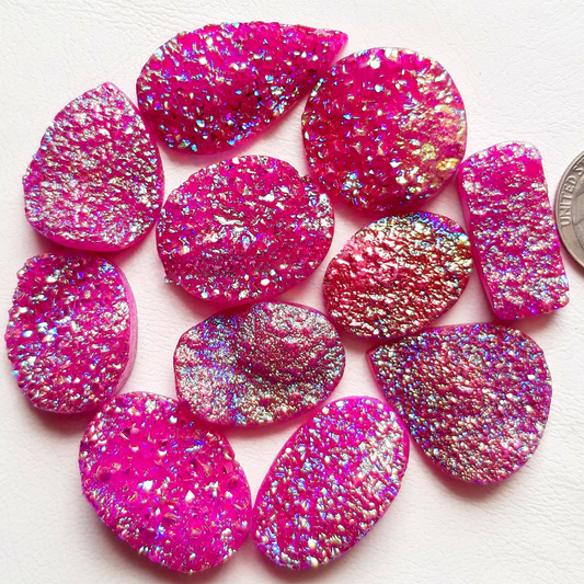 Pink Color Titanium Coated Druzy Stone Cabochon Wholesale Lot Gemstone By Pieces With Different Shapes And Sizes Used For Jewelry Making (Natural-Coated)