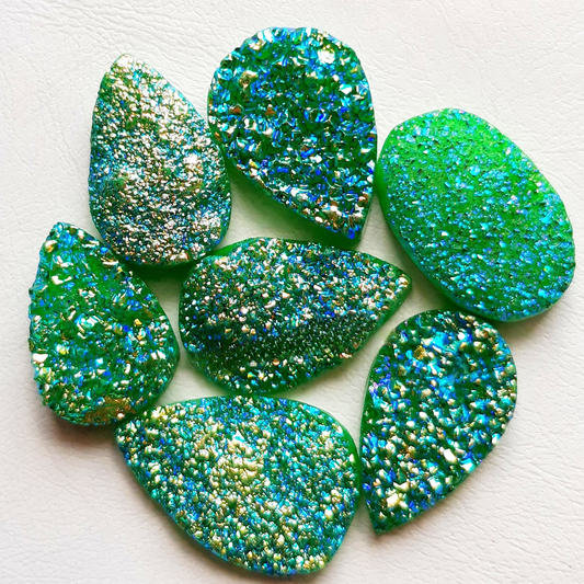 Green Color Titanium Coated Druzy Stone Cabochon Wholesale Lot Gemstone By Pieces With Different Shapes And Sizes Used For Jewelry Making Natural - (Natural-Coated)