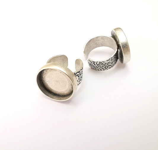 Silver Ring Setting Resin Ring Blank Cabochon Base inlay Ring Mounting Adjustable Ring Base Bezel (8 mm) Antique Silver Plated Brass