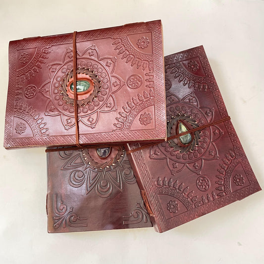 Embellished Leather Diary in a Compact 10x13 Inch Size" With Natural Gemstone