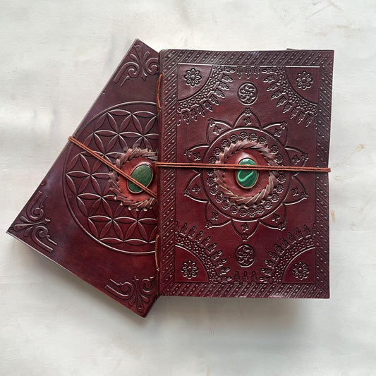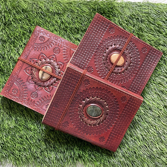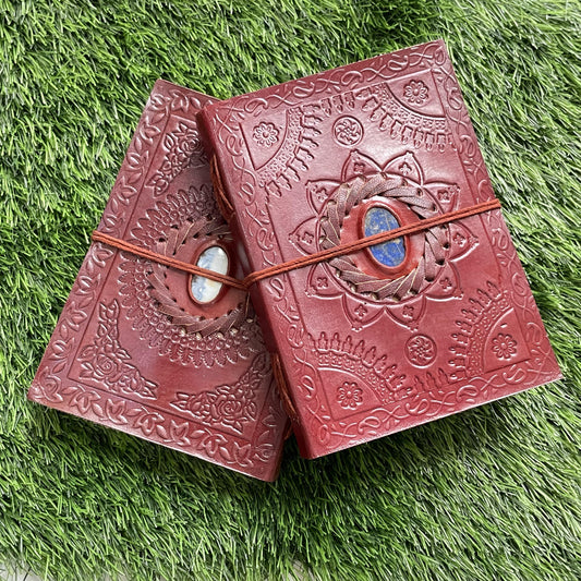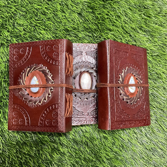 Embellished Leather Diary in a Compact 6x8 Inch Size" With Natural Gemstone