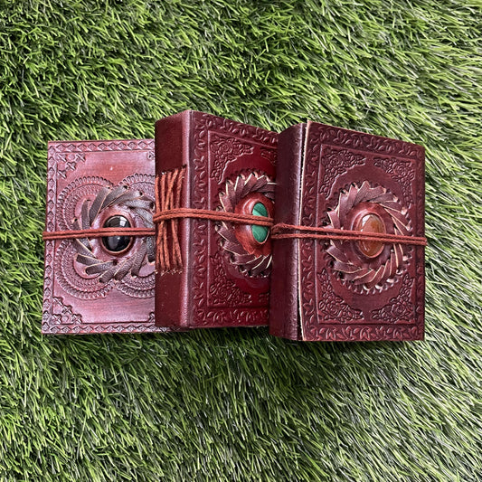 Embellished Leather Diary in a Compact 4x3 Inch Size" With Natural Gemstone