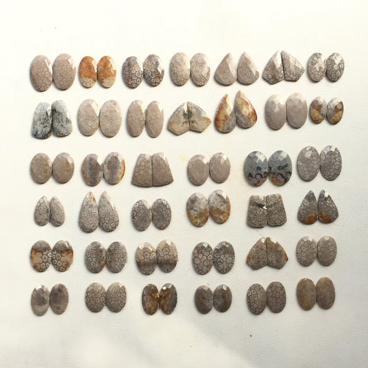 Natural Fossil Coral Pairs Cabochon (Natural)