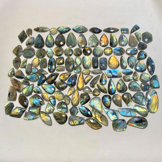 Natural Checker Cut Labradorite Multi Fire (Natural)