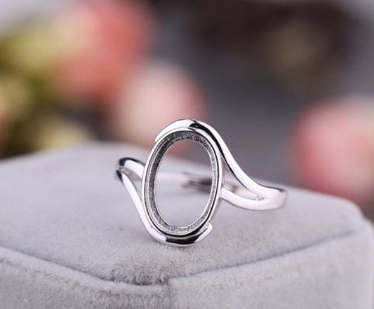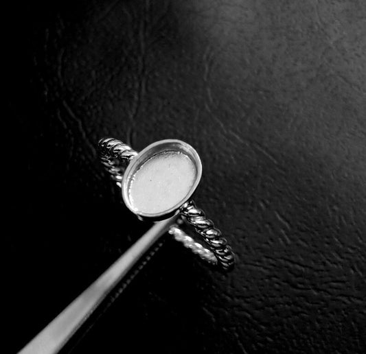 925 Sterling Silver Handmade Plain Bezel Ring Setting DIY Cup, For Oval Shape Gemstone With Rope Wire Band, For Resin And Keepsake Work ( 6x8 mm ) Oval Shape