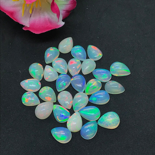 Fabulous Ethiopian Opal 7x10 mm Pear Cabochon, Natural Ethiopian Opal Multi Fire Opal Cabochon, Loose Opal Cabochon Gemstone. (Natural)