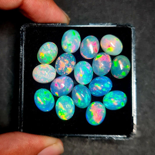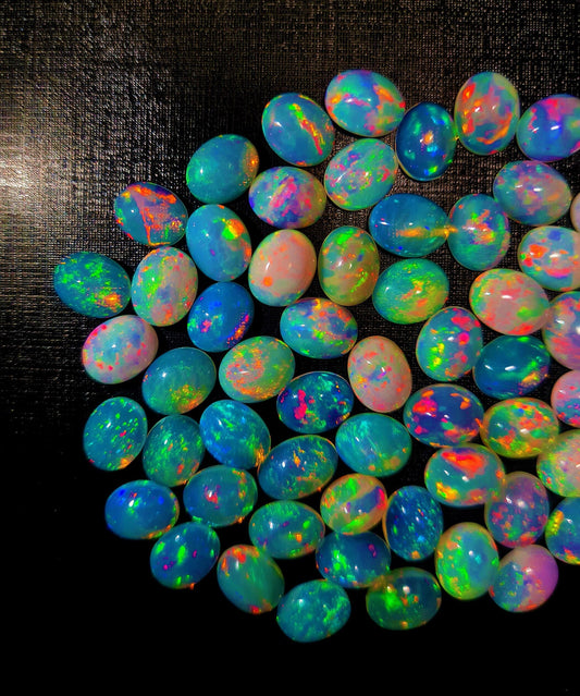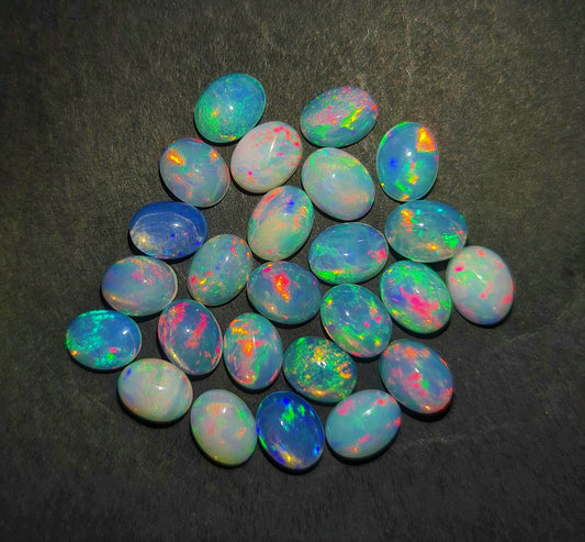 Natural Ethiopian Opal 7x10 mm Oval Gemstone Cabochon, Calibrated Opal Stone, Multi Fire Opal Loose Stone For Jewelry Making. (Natural)