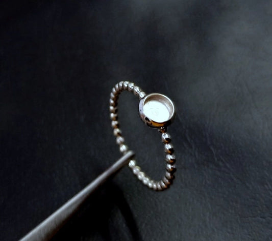 Sterling Silver 925 Stamped Ring Thick Bezel For Round Shape Gemstone With Beaded Band, Ring Bezel Setting, Bezel Round Ring Setting Cup ( 8 mm Round )