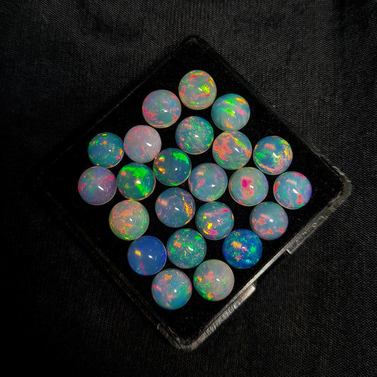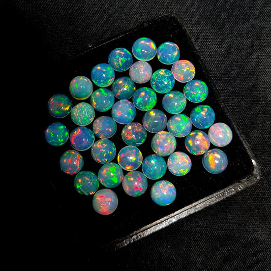 Natural Ethiopian Opal 6 mm Round Cabochon, Multi Fire Opal Gemstone, AAA Quality Opal Cabs Lot For Jewelry Making. (Natural)