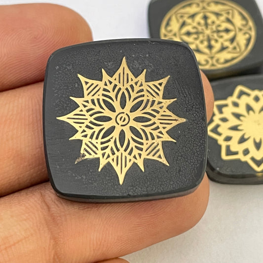 Black Metal doubled Golden Design gemstone offers a luxurious look. (Lab-Created)