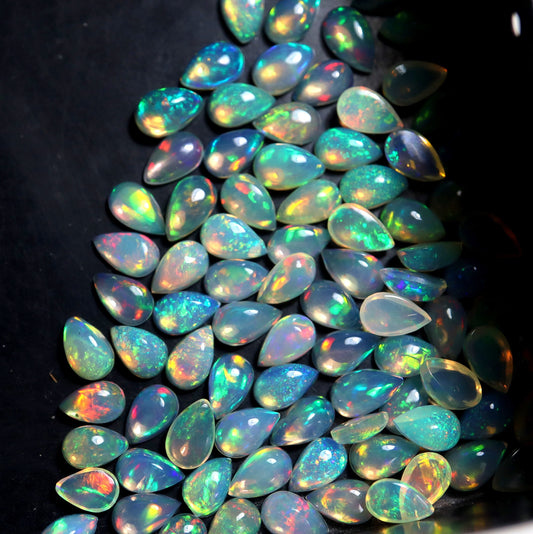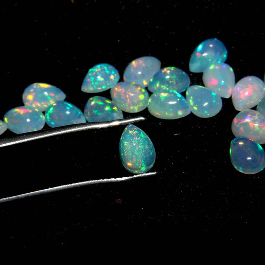 Beautiful Multi Color Fire Ethiopian Opal 5x7 mm Pear Cabochon, Natural Ethiopian Opal Multi Fire Opal Cabochon, Loose Opal Cabochon Gemstone. (Natural)