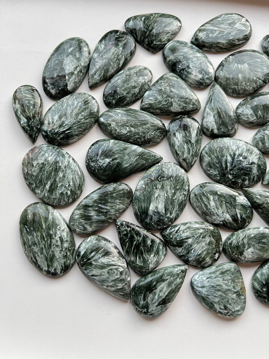 Top Quality SERAPHINITE Cabochon Wholesale Lot By Weight With Different Shapes And Sizes Used For Jewelry Making (Natural)
