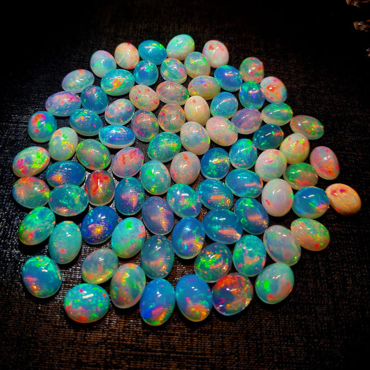 AAA + Quality Ethiopian Opal 5x7 mm Oval Cabochon, Rainbow Fire Opal Cabs, Ethiopian Wholesale Opal (Natural)