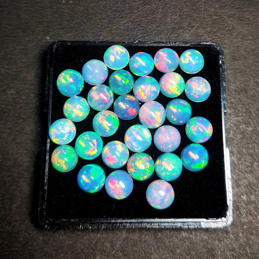 AAA Quality Natural Ethiopian Opal 7 mm Round Cabochon, Rainbow Fire Opal Cabs, Ethiopian Wholesale Opal (Natural)