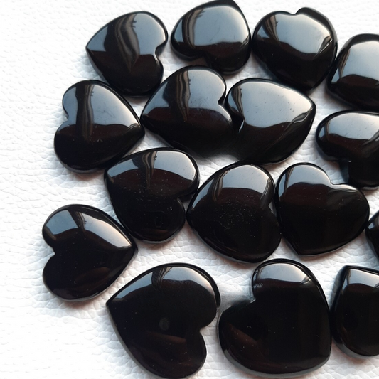 BLACK ONYX Heart Shape Cabochon Wholesale Lot By Weight With Different Shapes And Sizes Used For Jewelry Making (Natural)