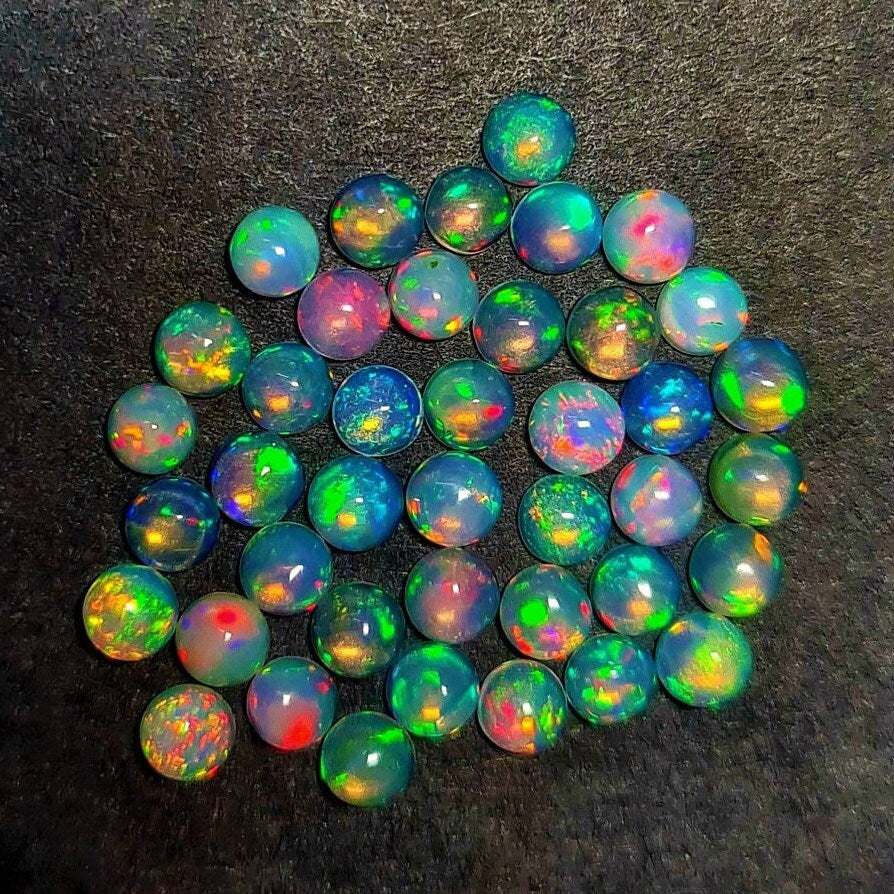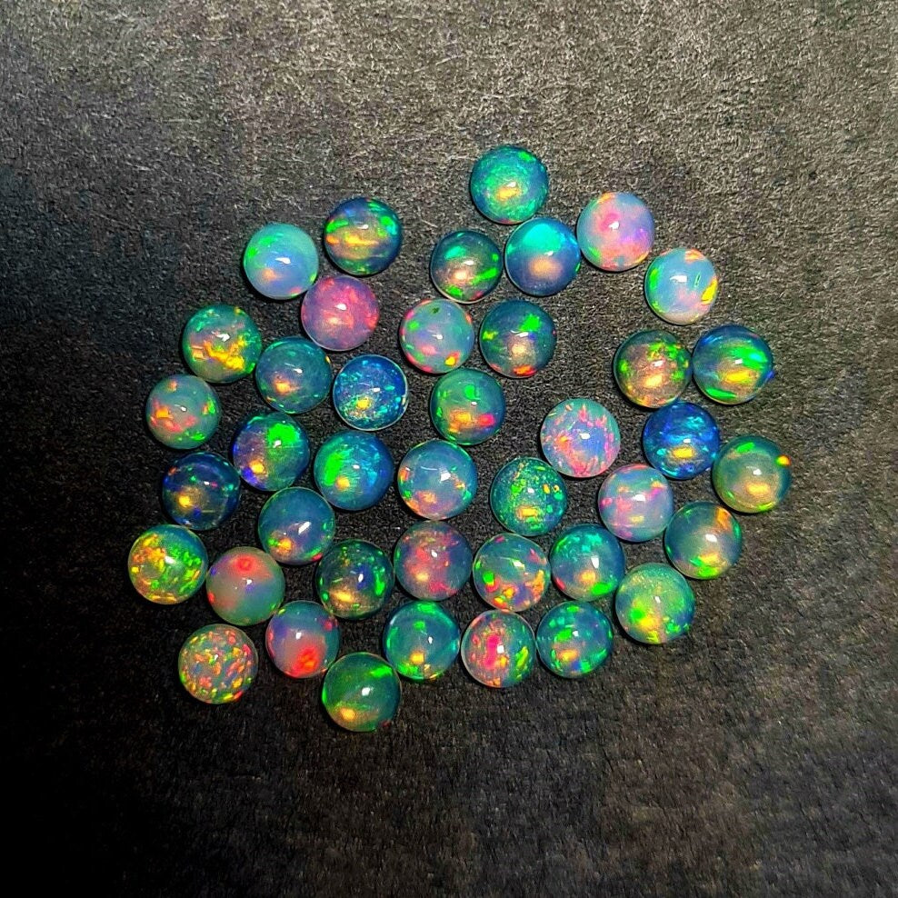 Natural Ethiopian Opal 4 mm Round Cabochons. High Quality Material with Amazing play of color (Natural)